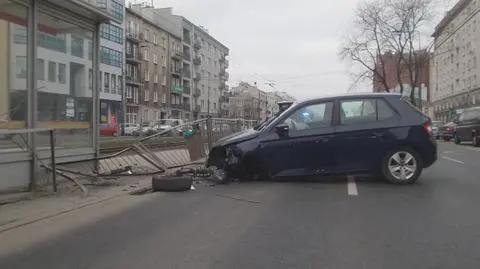 - Kierowca skody uderzył w barierki przystanku tramwajowego. Urwał przednie zawieszenie auta i mocno uszkodził barierki. Na koniec stanął w poprzek drogi, blokując dwa pasy ruchu w kierunku alei Zielenieckiej - relacjonuje Artur Węgrzynowicz z tvnwarszawa.pl.
