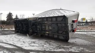 Mateusz Szmelter z tvnwarszawa.pl pojechał na miejsce. Podał, że chodzi o wylot z Warszawy w kierunku Piaseczna, a naczepa przygniotła samochód nauki jazdy. - Mamy bardzo duży korek ciągnący się do Południowej Obwodnicy Warszawy. Zablokowane są dwa pasy - powiedział. I dodał: - Kilkadziesiąt metrów obok, na stacji benzynowej, mamy kolejnego przewróconego tira. Był zaparkowany na stacji.
