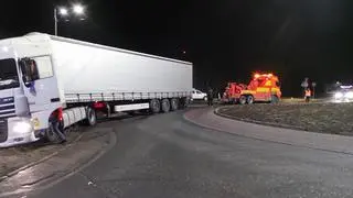 Informację potwierdziła straż pożarna. - Przed godziną 21 otrzymaliśmy zgłoszenie, że na Rozwadowskiego tir wpadł do rowu i zablokował przejazd przez rondo. Na miejsce pojechały trzy nasze zastępy, ale odstąpiliśmy od działań, bo na miejsce przyjechała prywatna firma, która będzie wyciągać auto z rowu – podaje Michał Konopka.