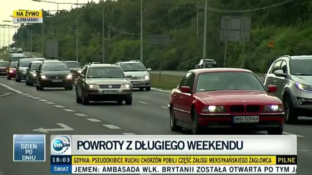 Na trasie do Warszawy przez Łomianki szczyt przypadł na godziny 17.00-18.00 - relacjonowała reporterka TVN24 Ewa Paluszkiewicz.