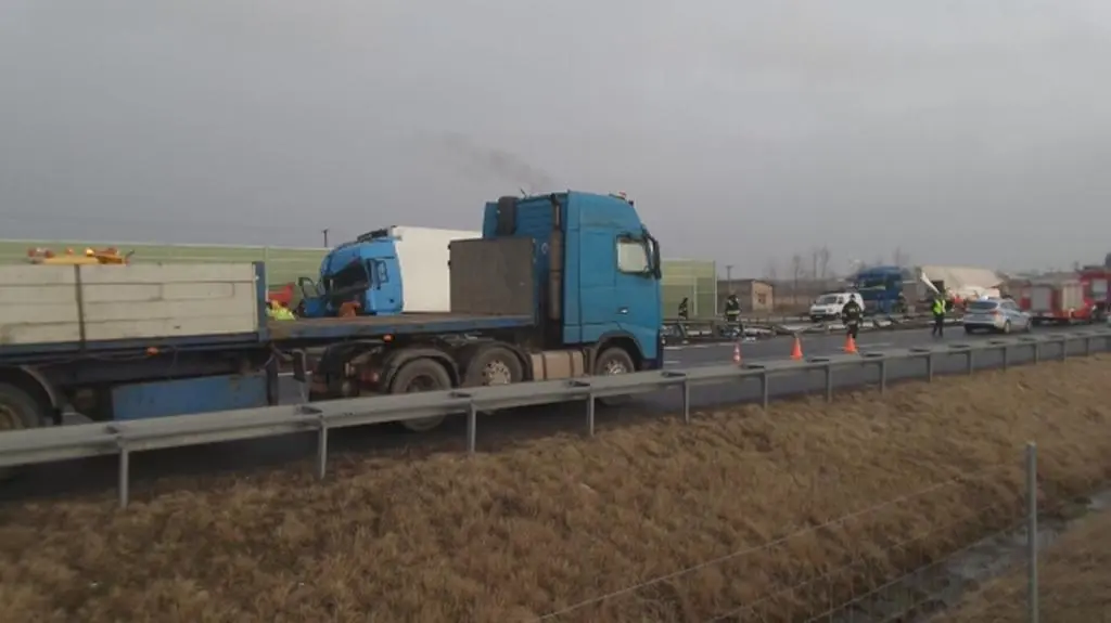 Droga była całkowicie zablokowana po tym, jak jedna z ciężarówek stanęła po zderzeniu w poprzek jezdni. Poszkodowany został jeden z kierowców. Trafił do szpitala w Grójcu. Jak informowała grójecka policja, zderzyły się renault i mercedes. Auta jechały w tym samym kierunku. Oba z naczepami.