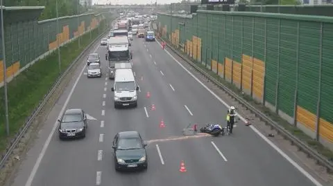 - Motocykl uderzył w tył mercedesa. Samochód został już zabrany na pas awaryjny, jednak jednoślad nadal leży na środku jezdni. Blokuje dwa pasy - relacjonował Tomasz Zieliński z tvnwarszawa.pl.