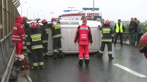 Informację potwierdza policja. - Kierowca prawdopodobnie za szybko jechał, a do tego jezdnia jest mokra - mówi asp. Piotr Świstak z biura prasowego stołecznej policji.