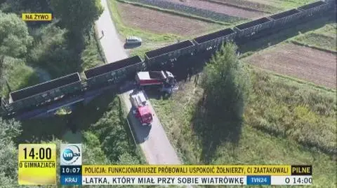 Jak zauważył reporter tvnwarszawa.pl Lech Marcinczak, paliła się również lokomotywa. - Widać, że ma uszkodzony zbiornik z paliwem. Zatrzymała się około 50 metrów dalej. Tam też zobaczymy ślady gaszenia, pożar musiał być duży - oceniał reporter.