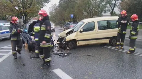 Do zderzenia doszło na wysokości Sejmu, przy kładce dla pieszych. - Ok. godz. 16 zderzyły się ford i peugeot. Prawdopodobnie któryś z kierowców wpadł w poślizg na łuku drogi - poinformował reporter tvnwarszawa.pl Artur Węgrzynowicz.