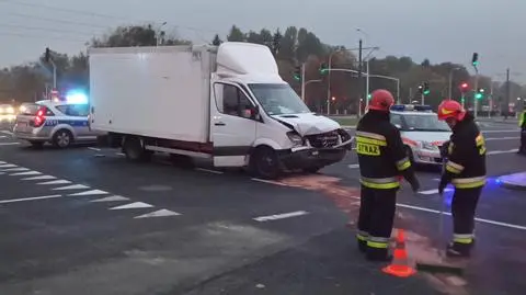 - Zderzyły się skoda fabia i dostawczy mercedes. Po uderzeniu samochód osobowy przejechał około 25 metrów i stanął w poprzek ul. Odyńca. Kierowca osobówki został zakleszczony w aucie - relacjonował.