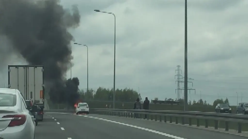 W czasie majówkowych wyjazdów na wylotówce z Warszawy płonął samochód: