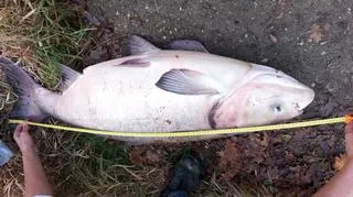W końcu rybę udało się wyciągnąć. Jednak i to, jak mówi mężczyzna, nie było proste. Najpierw wędkarze chcieli umieścić ją w podbieraku, ale zmieściła się w nim tylko głowa zwierzęcia. - Ostatecznie kolega, który był ze mną w pontonie, zaczął ją wyciągać, a ja musiałem podtrzymywać go za pasek - śmieje się wędkarz.