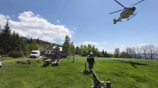 Oprócz dwóch karetek i czterech wozów straży pożarnej, na miejsce zadysponowano również śmigłowiec Lotniczego Pogotowia Ratunkowego. Ratowników do poszkodowanego dowoziła mniejszymi samochodami straż leśna.