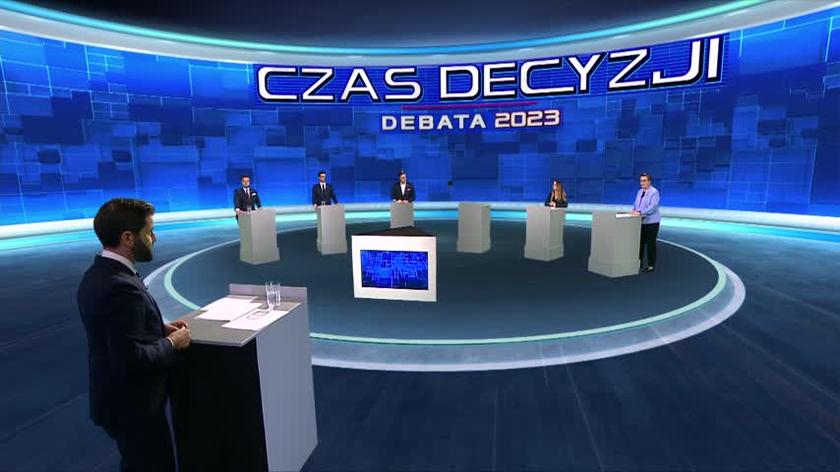 Podatki, stosunki państwo - Kościół, afera związana z wydawaniem wiz, służba zdrowia - między innymi o te kwestie pytani byli przedstawiciele komitetów wyborczych Koalicji Obywatelskiej, Nowej Lewicy, Trzeciej Drogi, Bezpartyjnych Samorządowców oraz Konfederacji w programie "Czas Decyzji: DEBATA" w TVN24.